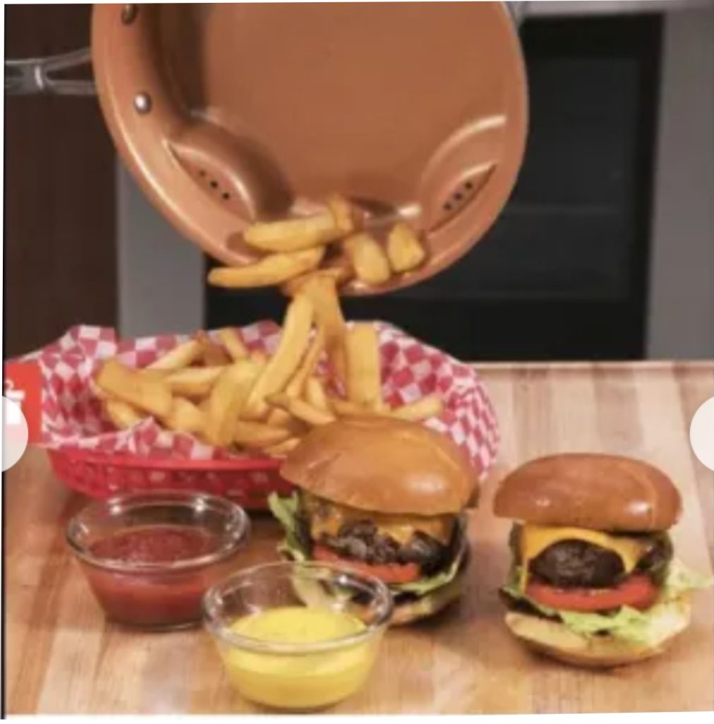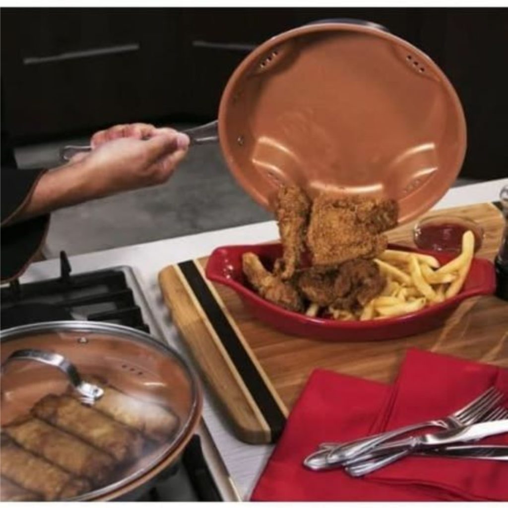 This revolutionary feature of THE NON-STICK AIR FRY Pan allows you to dry, cook, bake, roast steam and fry on a lower heat settings for maximum energy saving with just a drop of oil or other fat while locking moisture in the food and preserving all nutrients and natural juices. Easy to clean, long term use. For healthy & quick cooking